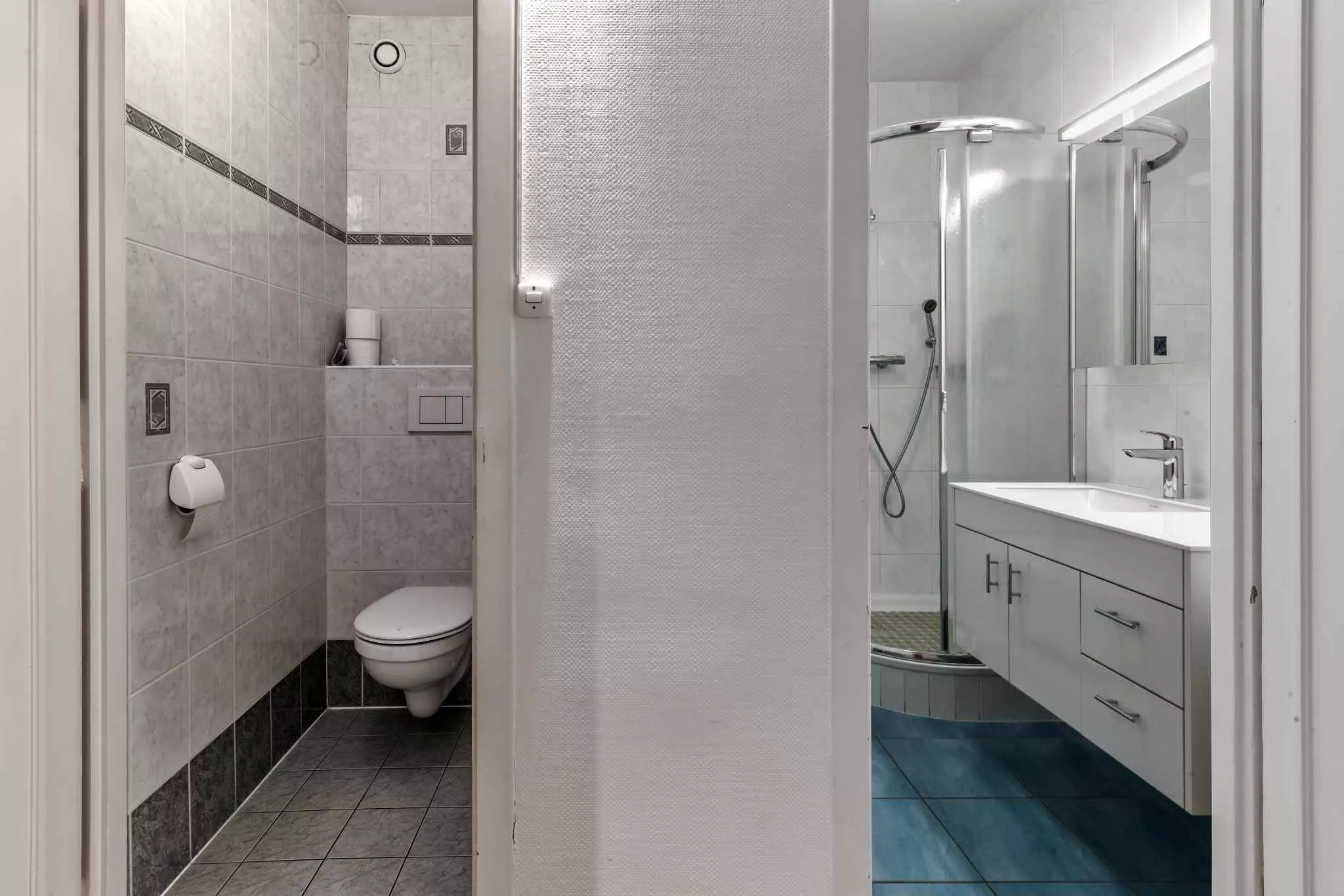 L'appartement est traversant et offre une surface pondérée de 104.8 m2. Il se distribue comme suit: un hall d'entrée, un séjour/salle à manger, une cuisine (à transformer), deux chambres avec loggia, une salle de douche complète et des toilettes séparées.
