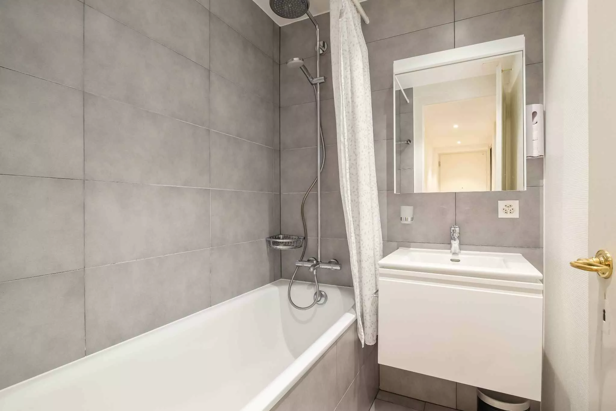La cuisine dispose d'un coin repas, le séjour s'ouvre sur une alcôve et un petit accès extérieur. La grande chambre à coucher donne sur la cour intérieure, garantissant le calme.