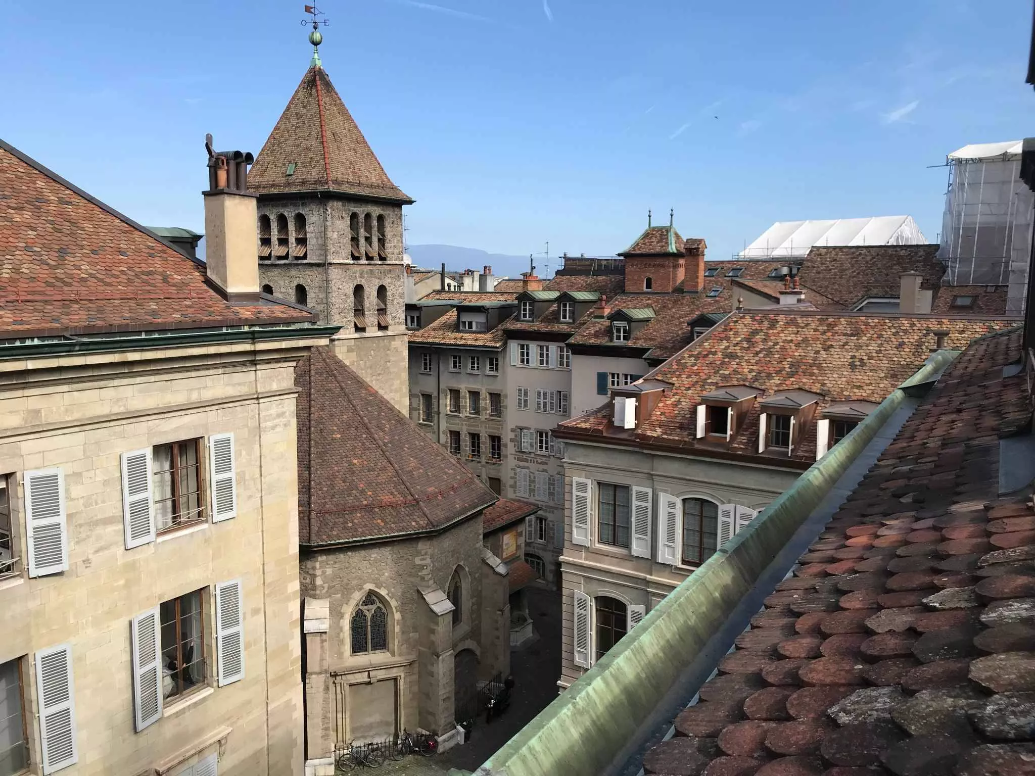 Situé au cœur de la Vieille-Ville, dans un magnifique et emblématique immeuble classé du 18e siècle de la rue des Granges, surplombant la Treille et la Place Neuve, ce duplex au dernier étage d'une surface PPE de 125 m2, offre une belle vue dégagée sur le parc des Bastions.
