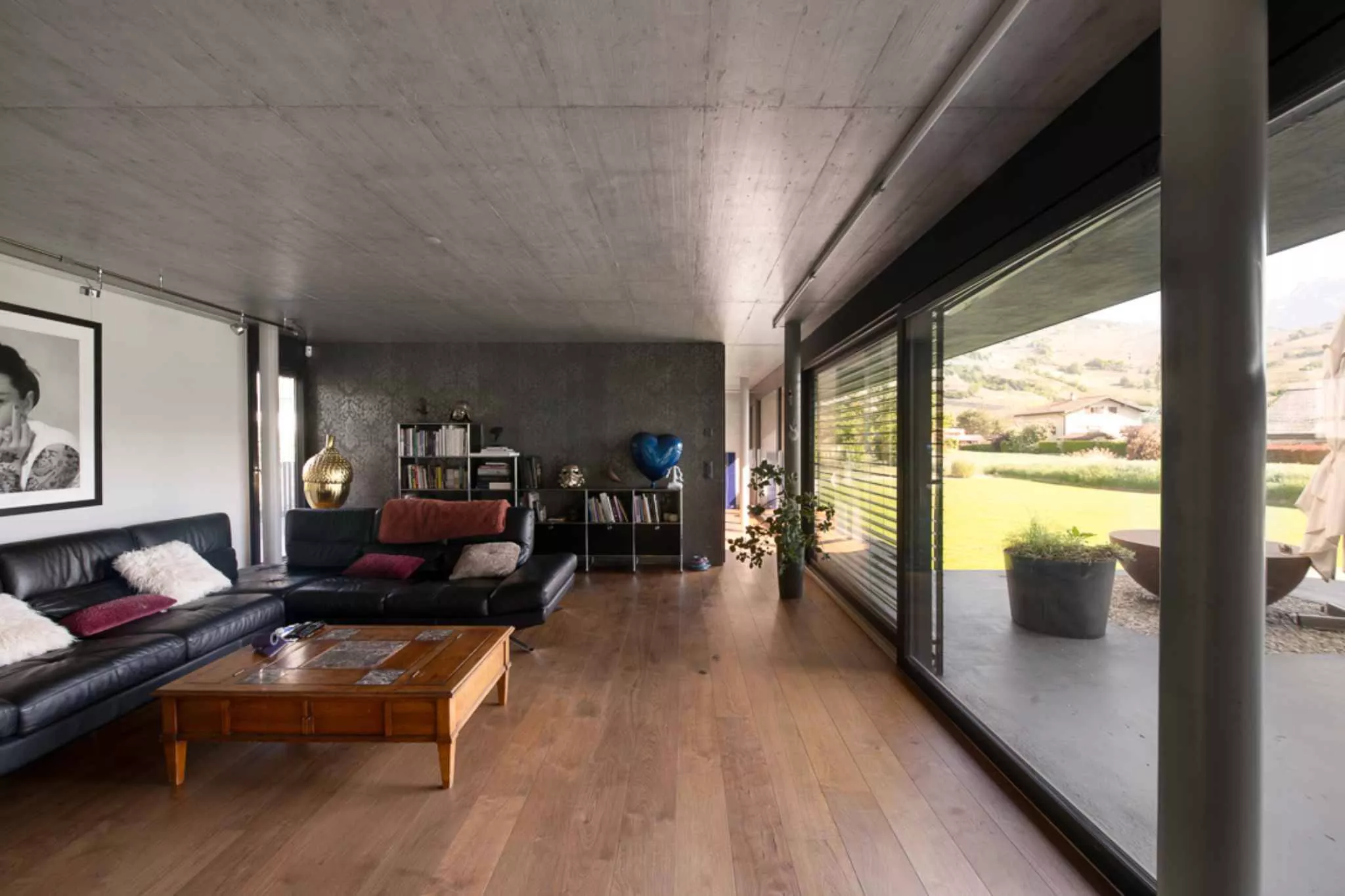 Cette propriété à l'architecture contemporaine unique séduit par sa construction en béton apparent, ses matériaux de très haute qualité, ses grands volumes baignés de lumière, son studio indépendant ainsi que son environnement calme offrant une magnifique vue sur les montagnes.