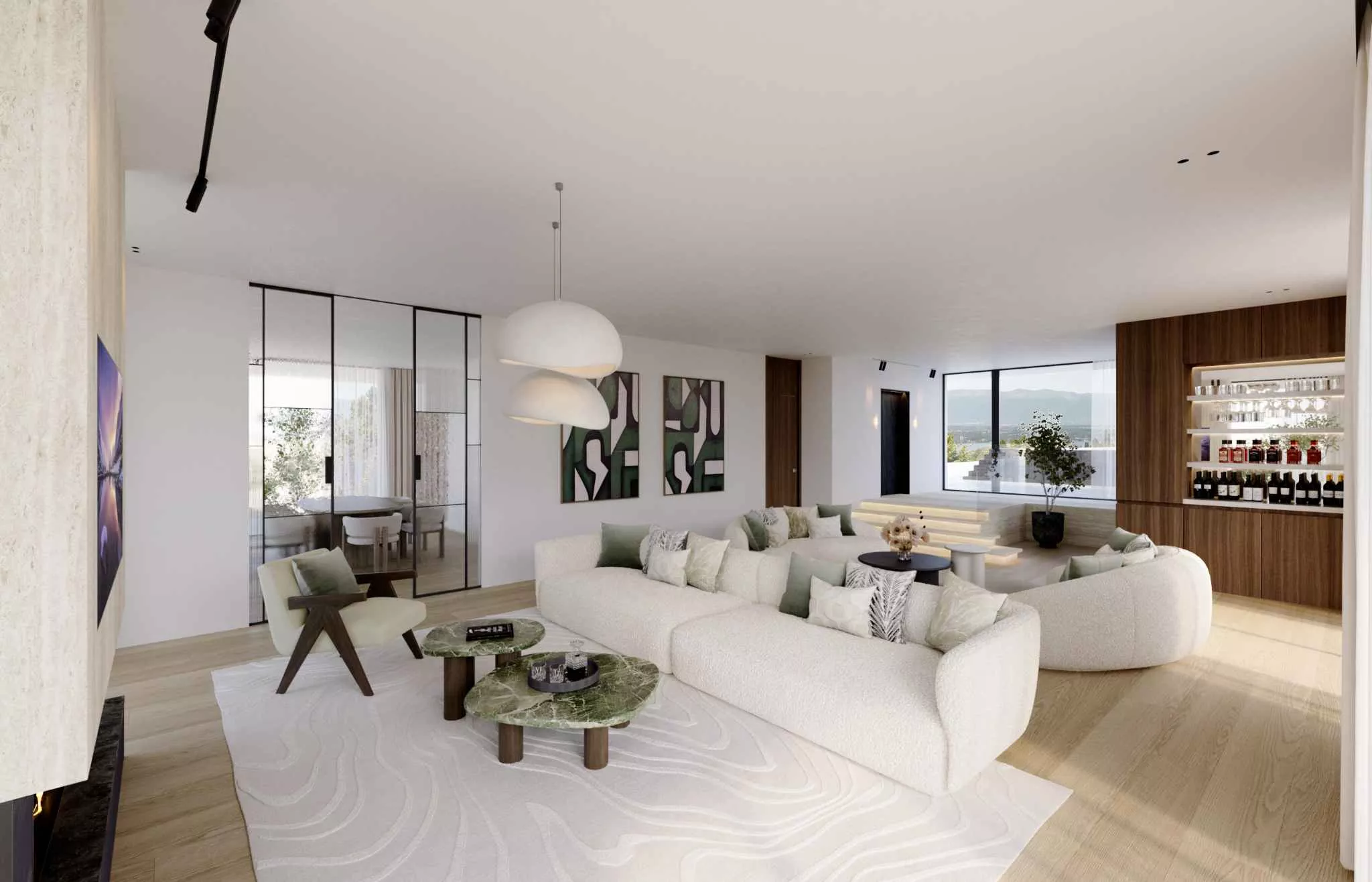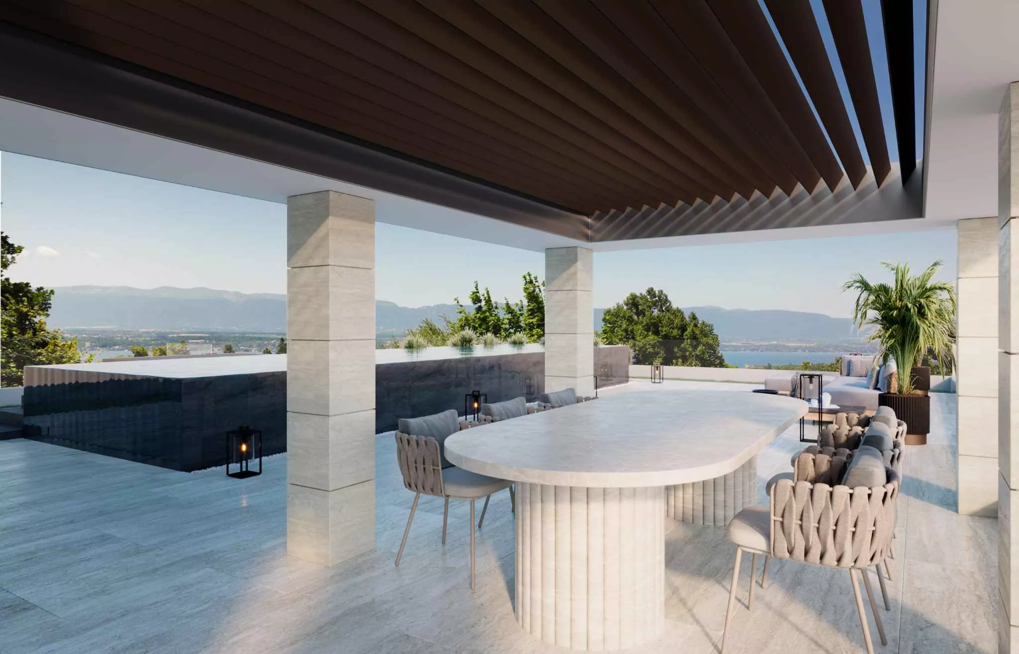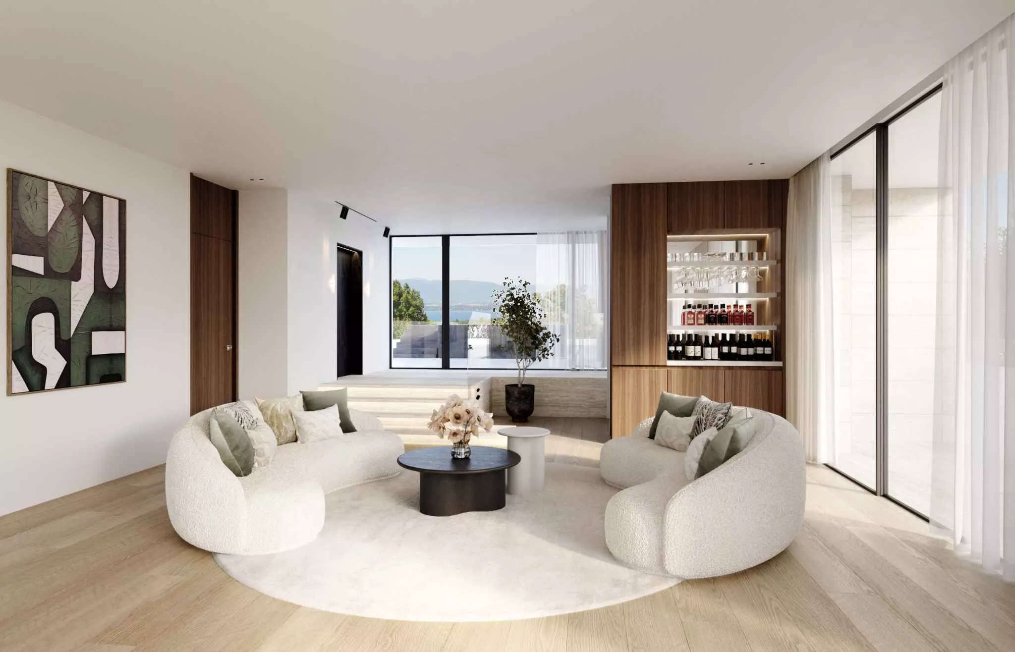 Les espaces de réception offrent une atmosphère raffinée avec deux salons, une salle à manger et une cuisine entièrement équipée, s'ouvrant sur une vaste terrasse de plus de 200 m², aménagée pour recevoir, bénéficiant d'une vue imprenable sur le lac et d'une piscine privée de 12 x 4 mètres (en option, permis autorisé).