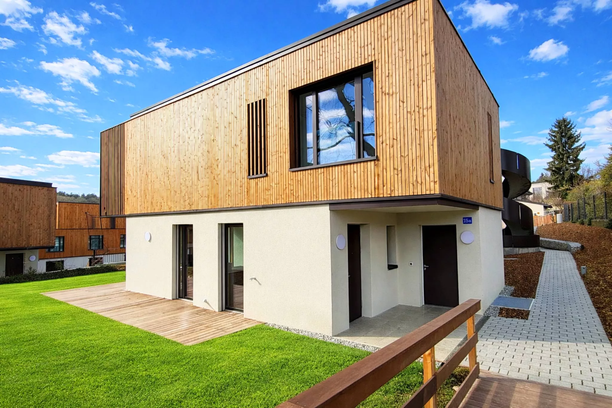 Dans un cadre verdoyant, cette maison de ville de standing offre un cadre de vie idyllique à proximité de toutes les commodités. Cette construction de grande qualité, d'une architecture contemporaine alliant des matériaux haut de gamme vous séduira avec ses beaux espaces lumineux et ses grandes surfaces extérieures ensoleillées.